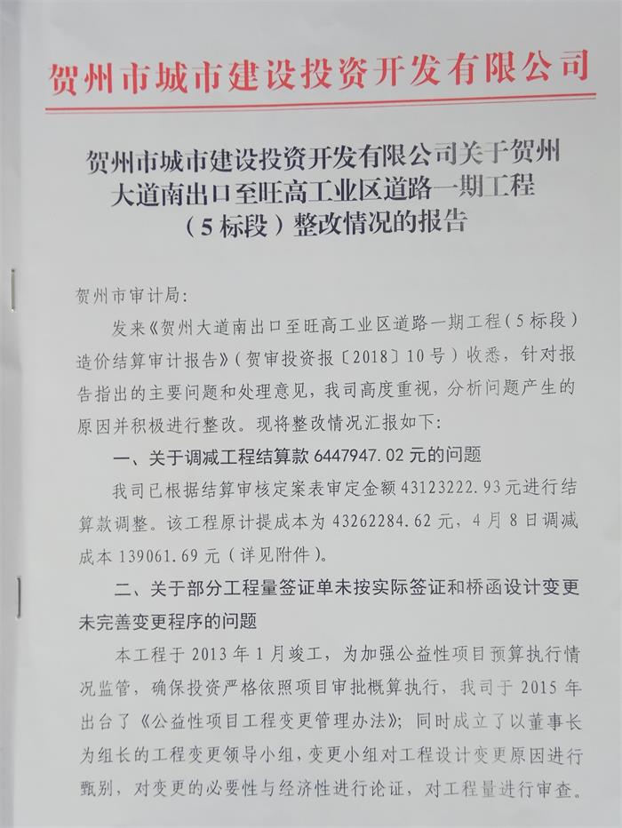 關(guān)于賀州大道南出口至旺高工業(yè)區(qū)道路一期工程(5標(biāo)段)整改情況報(bào)告