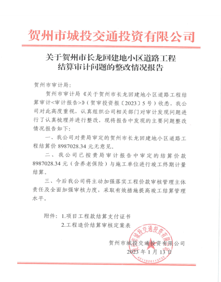 下一篇:城投公司關于望高至擔桿嶺水廠原水輸水管道項目結算審計發現問題整改情況報告