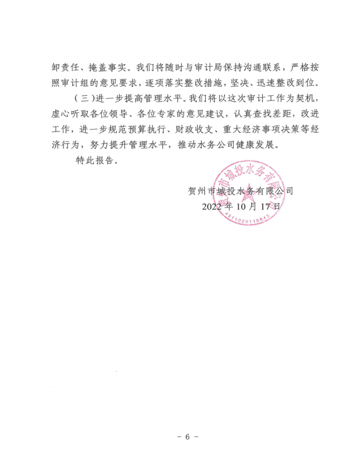 上一篇:關于賀州市城投公司辦公樓附屬裝修工程結算審計發現問題整改情況的報告