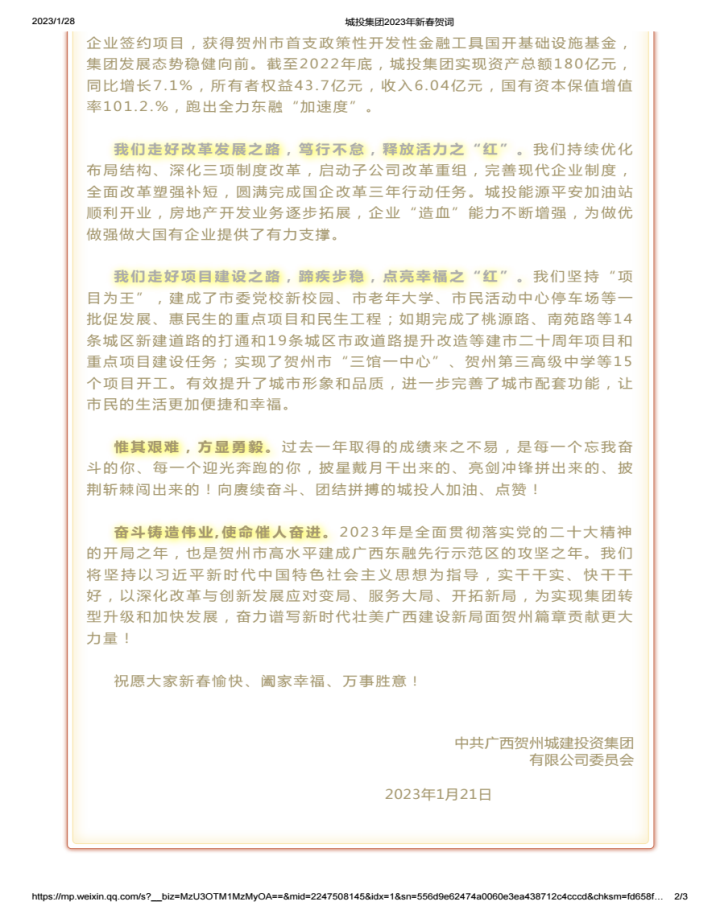 城投集團2023年新春賀詞