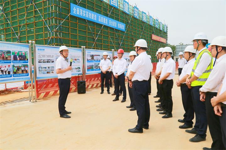 當天,集團黨委書記、董事長黃俊,黨委副書記、總經(jīng)理常瑜率領的黨委理論中心組成員以及董事會秘書、總經(jīng)理助理、各子公司主要負責人、集團相關部門負責人一行20余人,先后前往賀州市“三館一中心”、市民活動中心三期、城市運營數(shù)字管理中心、賀州市出水塘棚戶區(qū)改造項目、火車站綜合客運樞紐項目、賀州市旺高工業(yè)區(qū)水廠及管網(wǎng)擴建工程、賀州第三高級中學項目等7個項目進行現(xiàn)場督辦,詳細了解項目進展情況,協(xié)調(diào)解決存在問題。