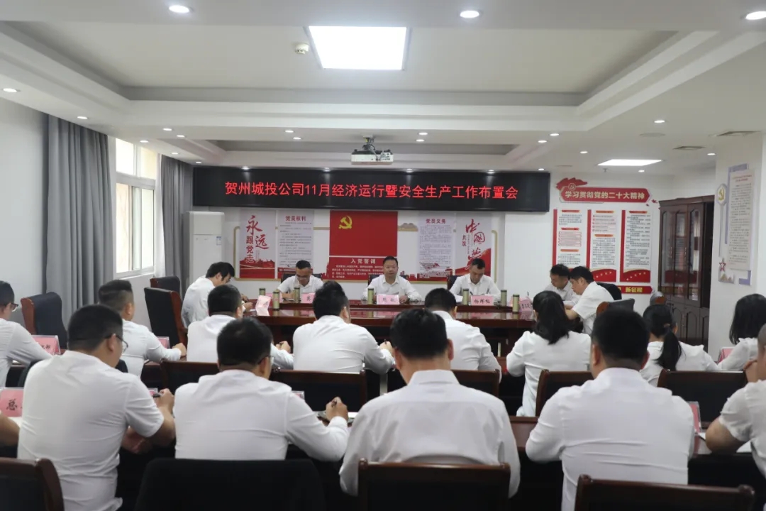 11月17日,賀州城投公司召開11月經濟運行暨安全生產工作布置會,深入分析當前經濟運行態勢,全面部署下一階段安全生產重點任務。公司黨支部書記、董事長熊敏主持會議并講話。