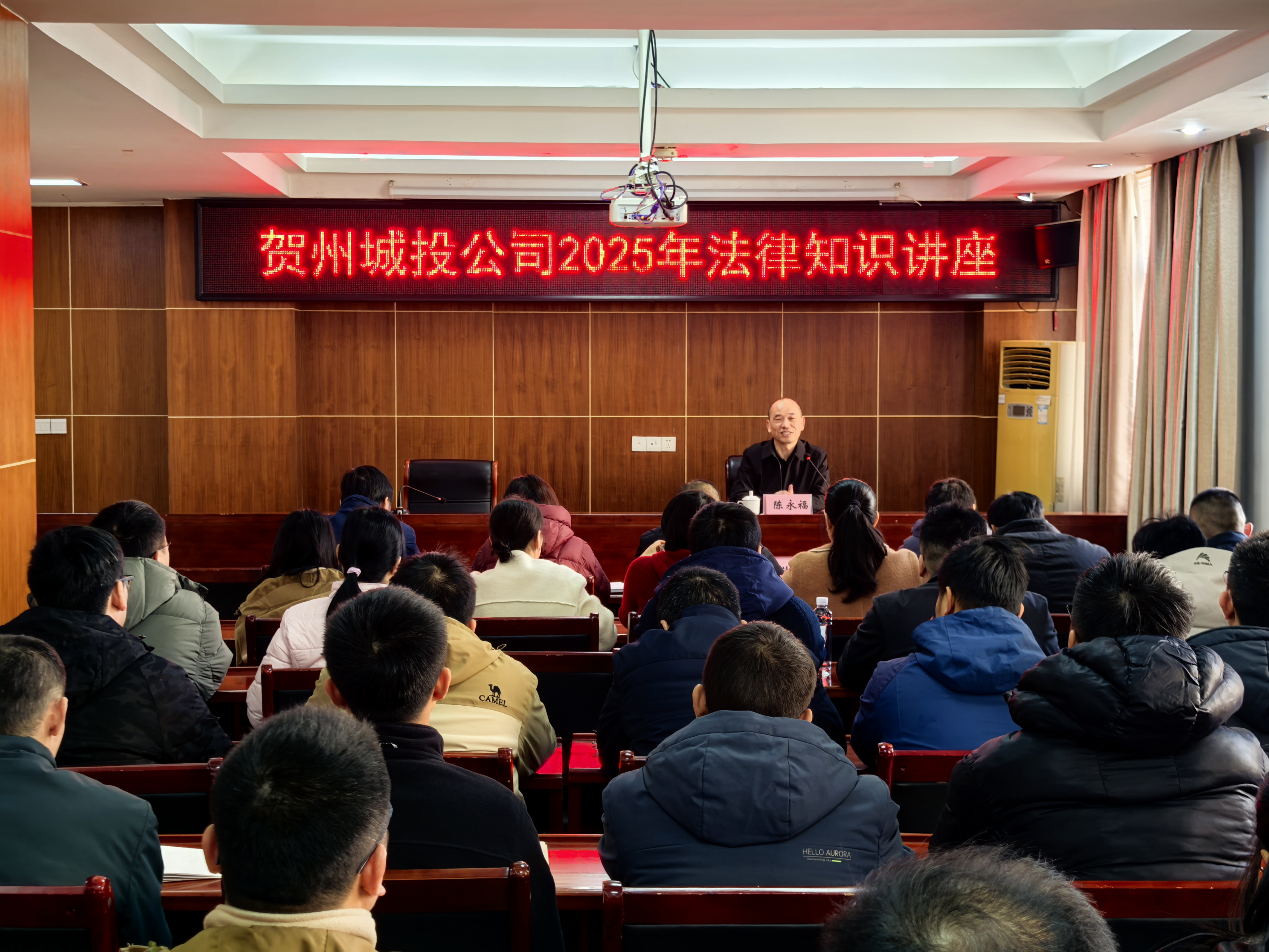 為夯實集團公司法治建設根基、提升全員法律風險防范能力,12月26日上午,城投公司舉辦2025年法律知識講座。講座由公司副總經理莫塵主持,特邀廣西眾望律師事務所律師陳永福擔任主講。集團公司本部及下屬實業、水務、能源等公司代表受邀出席,城投公司領導班子、各部門負責人及全體骨干員工全員參訓。